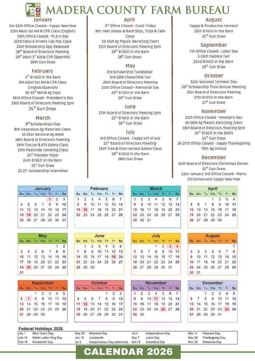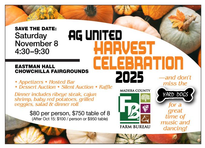 Friends of Madera County Farm Bureau (FFB) is our newest membership. Now offering three premium memberships, allowing businesses and individuals the ability to provide a greater commitment to the goals of the Farm Bureau. FFB members are like-minded people who know the value of farming and ranching in Madera County and want to help promote them.